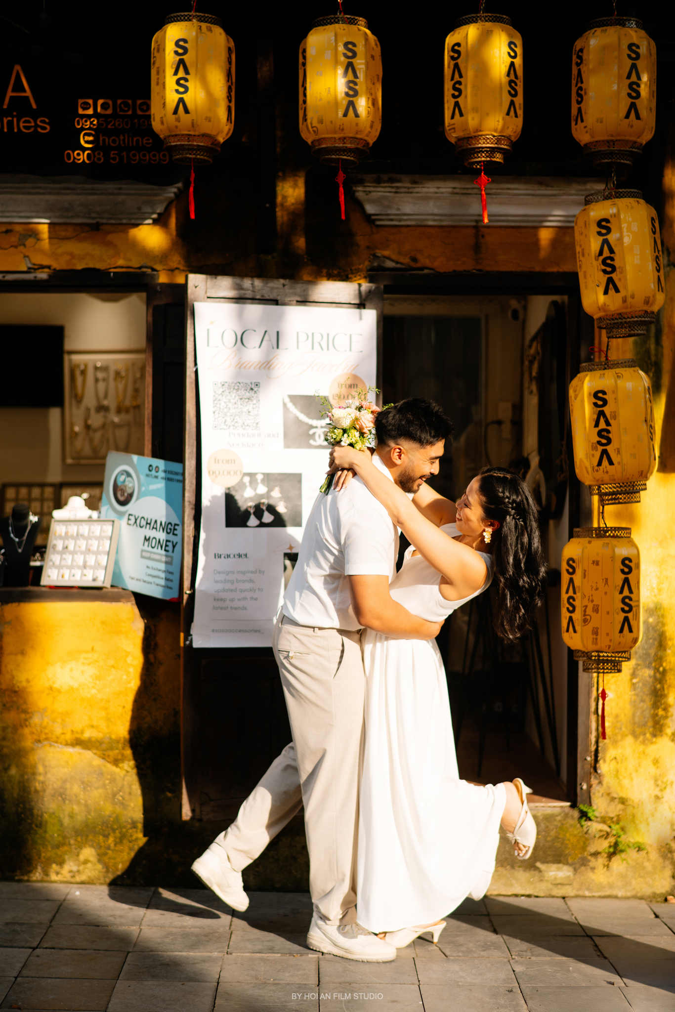 Annkia và Hamilton từ Mỹ có buổi chụp ảnh cưới magic vào giờ vàng ở hội an. Đi dạo qua những con phố cổ yên bình, ánh hoàng hôn rọi nhẹ trên sông, cùng những phản chiếu tinh tế trên mặt nước, mọi khoảnh khắc đều được Hoi An Film ghi lại tự nhiên và đầy cảm xúc. chỉ vài giờ nhưng bộ ảnh đã kể được câu chuyện tình yêu trọn vẹn và điện ảnh.